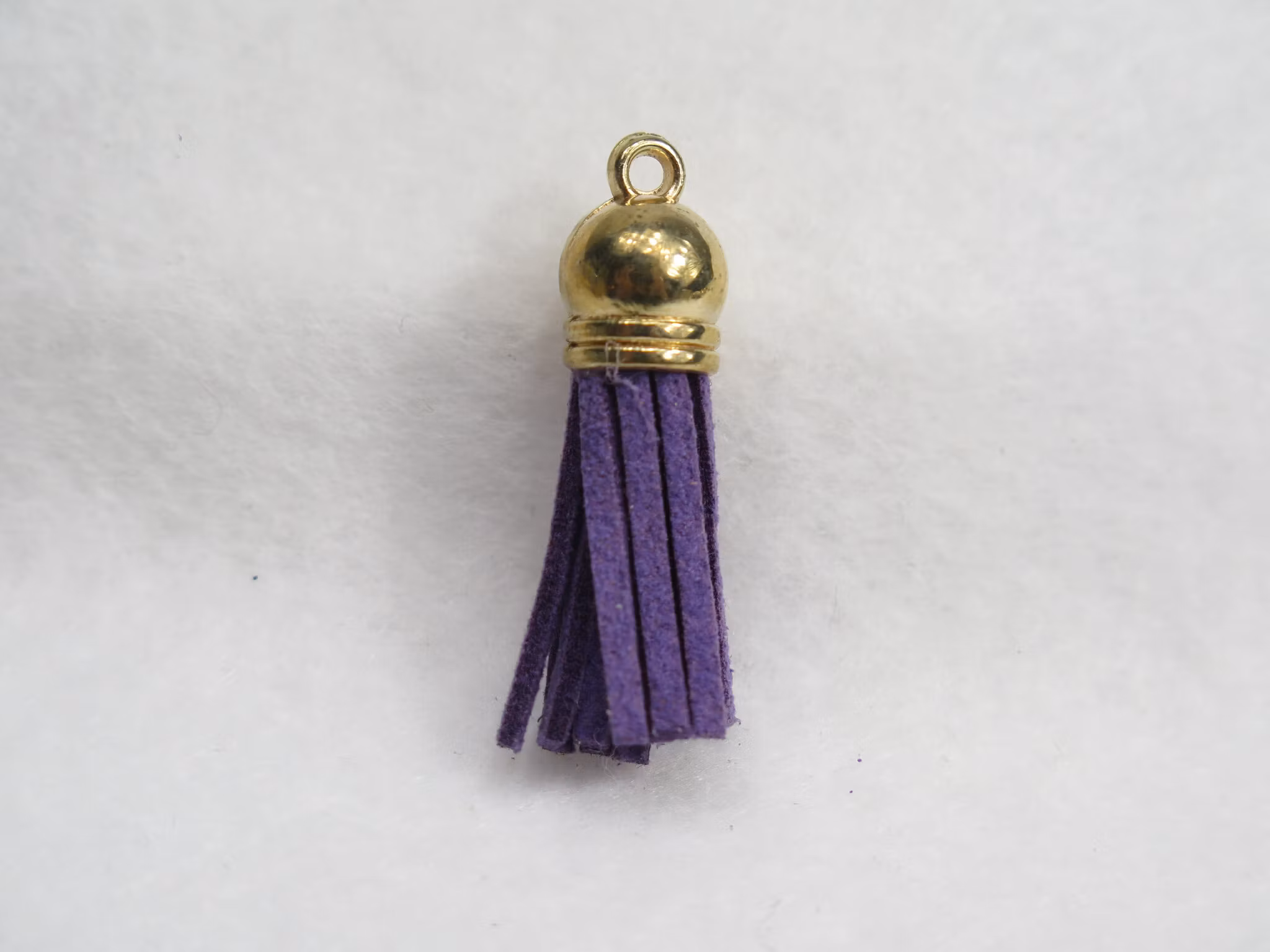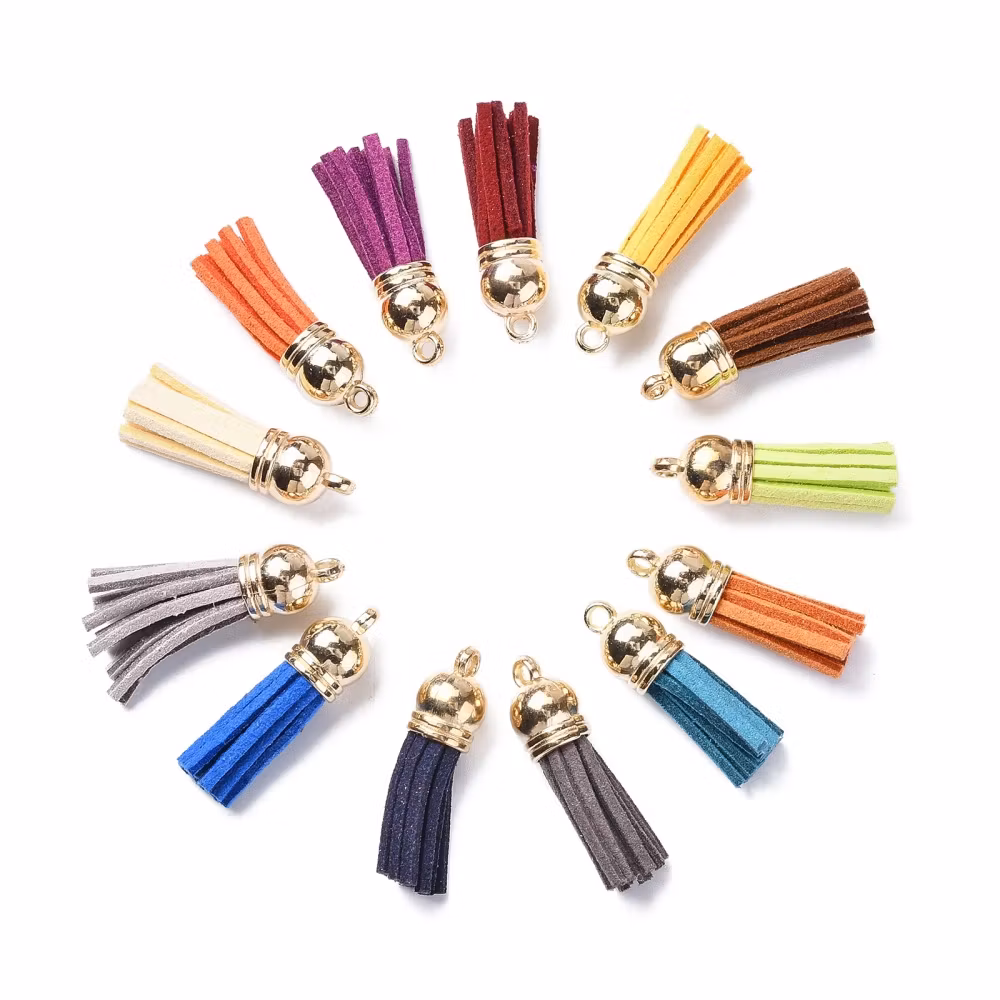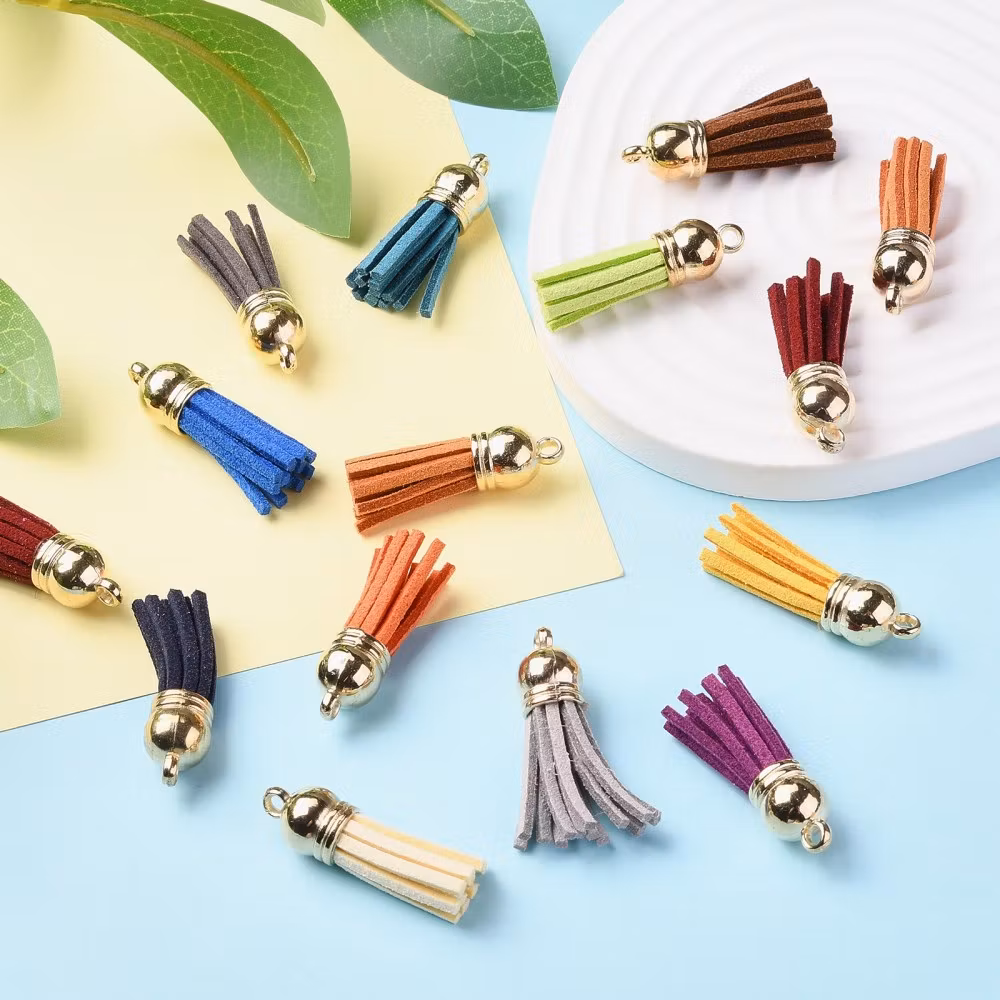 Konstgjord mocka tofs hängande dekorationer, med CCB plaständar i ljusguld.
