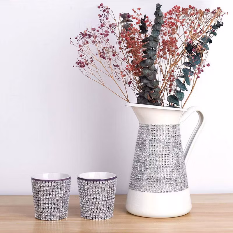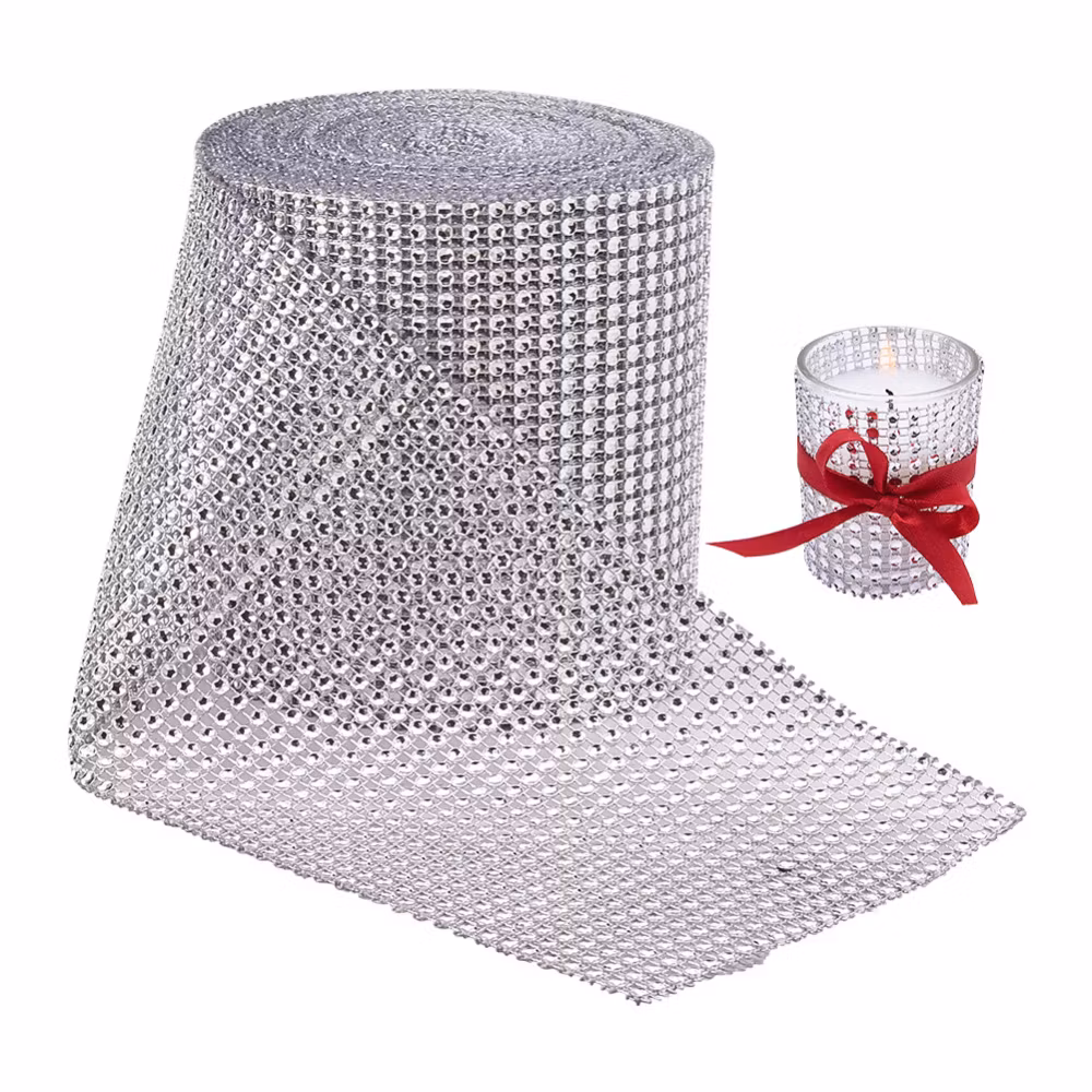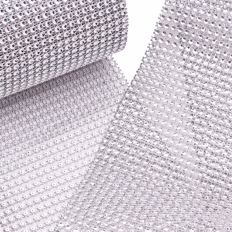 Plastnät strass trimning, Rhinestone Cup kedjor, silver
