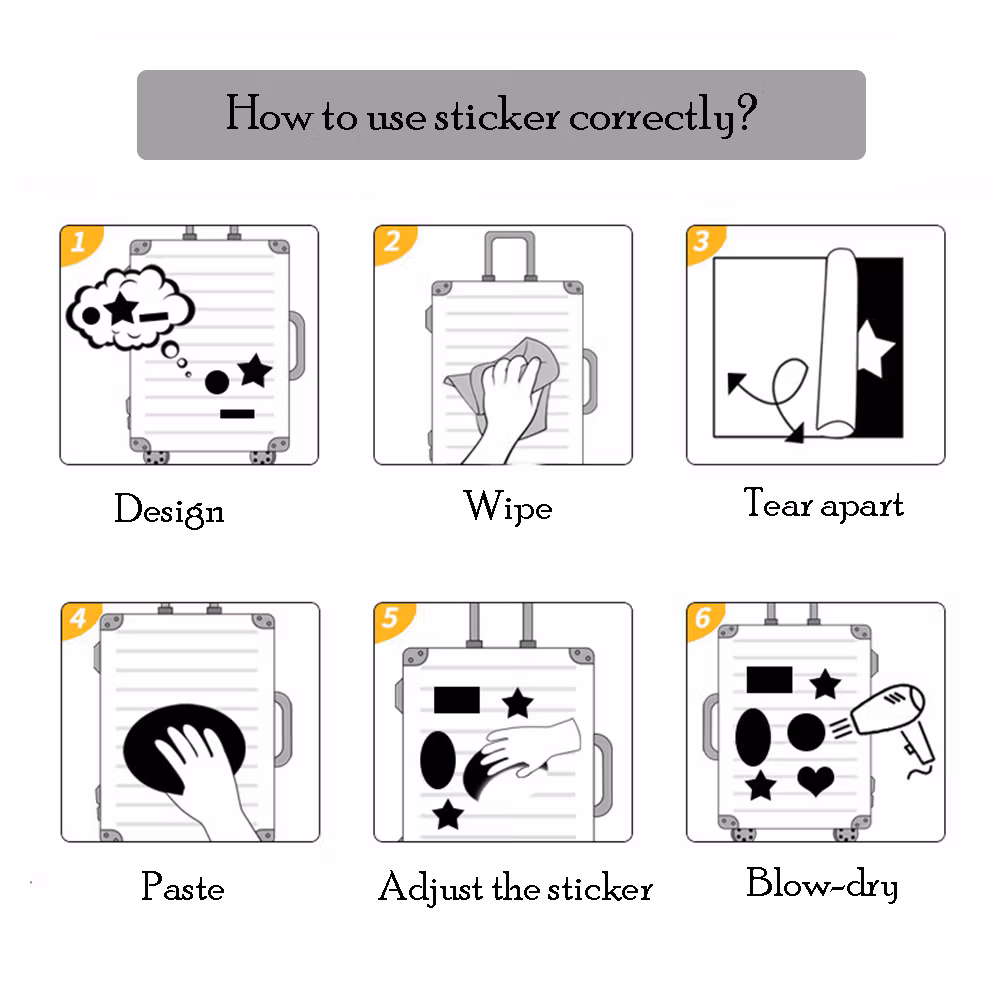● Vattentäta klistermärken: Du behöver inte vara orolig för att dina klistermärken tappar sin viskositet när de blir våta på en regnig dag eller i ett duschrum, pool, strand.